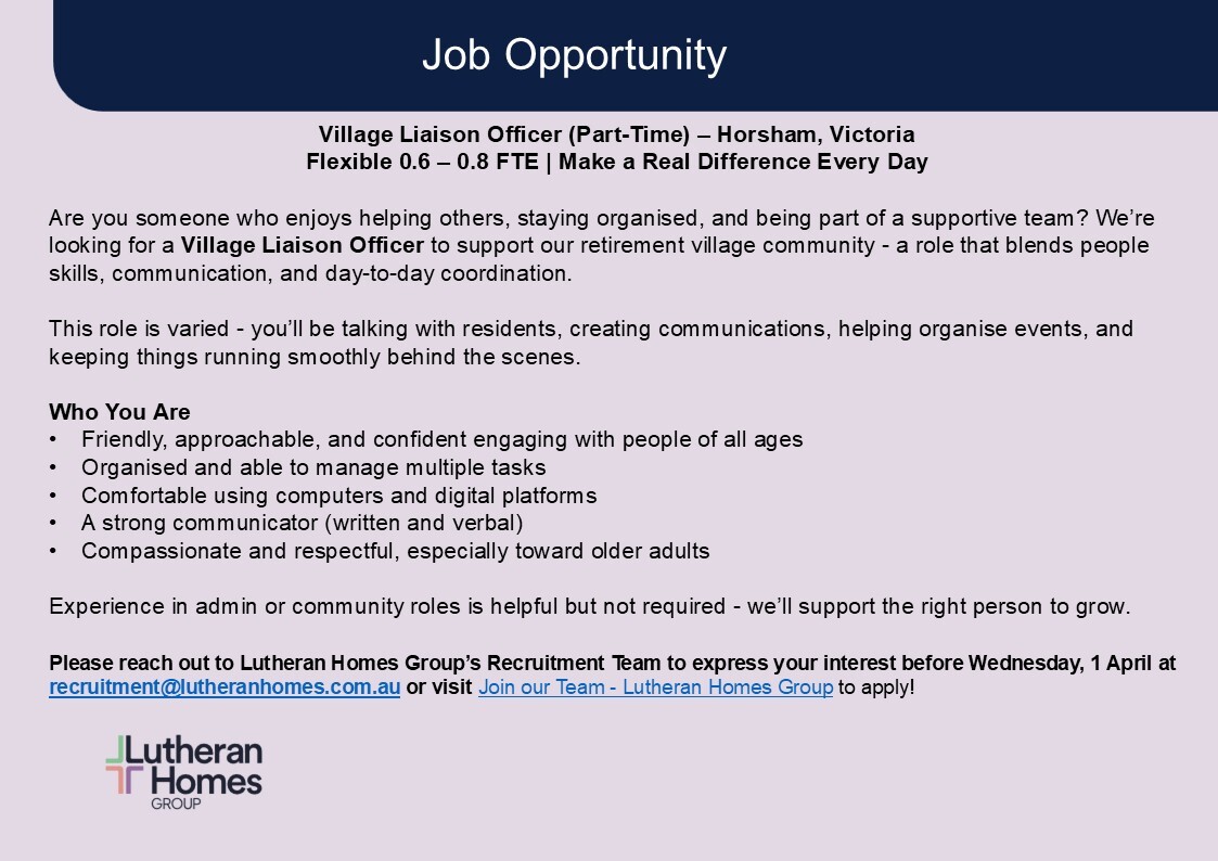 One of the shared positions across Wimmera Lutheran College is the role of the Promotions and Communications Manager and I wish to provide the following update. Mrs Georgia Thomas has taken maternity leave, effective from the end of last week. We wish Georgia and Jamie every blessing as they prepare to welcome their second child. The Promotions and Communications role will be filled by two staff members in Georgia’s absence, Ms Cass Dalgleish (who returns to the position from maternity leave - welcome back Cass) and Hannah Borlase who has accepted a 0.4 contract until the end of this year. Both staff members have worked in this role previously and will do an excellent job of managing WLC’s marketing and communications portfolio.
